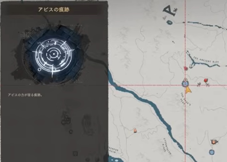 1. 初期の街のアビスの痕跡から北へ進み、岩場へ向かいます。