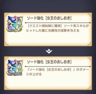また、「女王のお仕置き」でソード系スキル全体のダメージが底上げされるため、闇属性のソード(デインソードなど)にも追撃効果が乗る。
