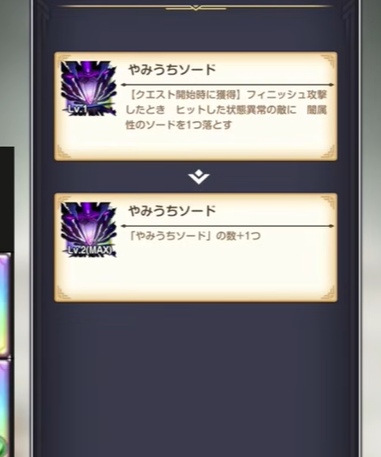 プラチナウイングの固有スキル「やみうちソード」は、敵が状態異常のとき闇属性のソードを追加で落とす効果を持つ。