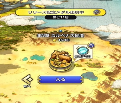 冒険ステージを進めていくと順番に解放されるイベントです。最大の魅力はスタミナを消費せずに参加できる点で、後半のゴーレム戦ではスタミナ回復薬大が6個、合計300分のスタミナを入手できます。スタミナがなくなったタイミングで活用するのが特に効果的です。解放後はベビーマジシャンのステージなども利用できるようになります。