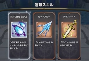 まず開幕スキルを選ぶ際は、持っている武器に合わせましょう。プラチナウィング持ちなら「つぶて強化どく」、女王の鞭持ちなら「デインソード強化」など。