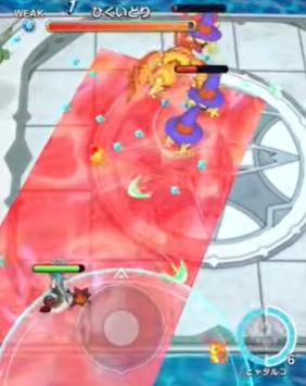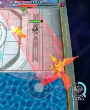 ひくいどりが飛んでくるタイミングに合わせて必殺技を使うと、無敵時間で突進を回避しつつ敵を中央付近に止めることができます。