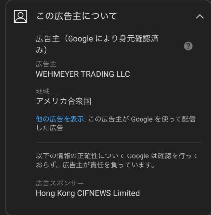 広告主と広告スポンサーは以下のように、広告主がアメリカの会社、広告スポンサーが香港の会社となっています。