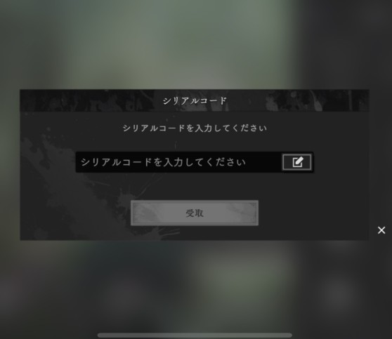 | 手順 | シリアルコードを入力して、受取ボタンをタップ |