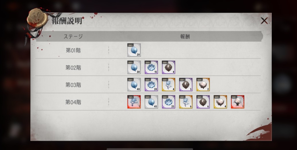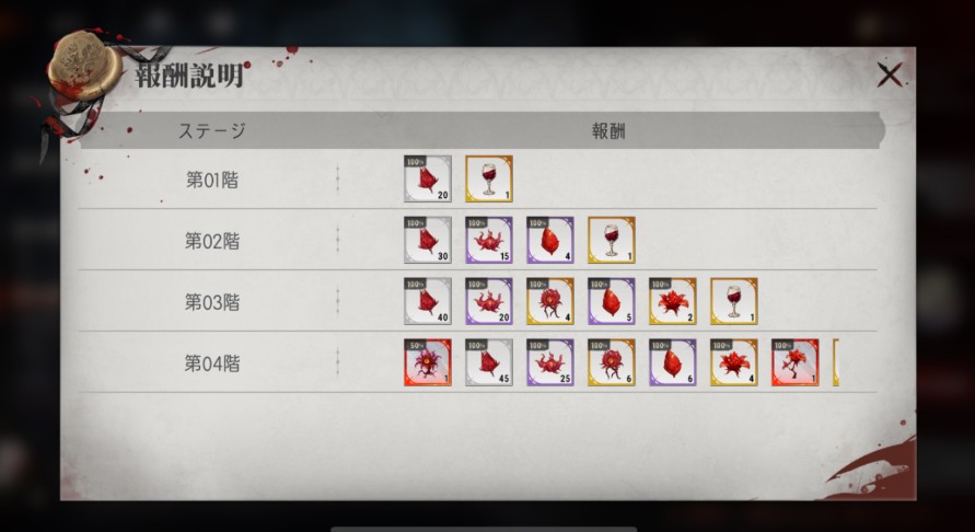 ボス以外の敵が撃破されるとい、血魂ゲージが蓄積される。血魂ゲージが最大まで蓄積されると対応する数量の血魂を獲得する。 |
