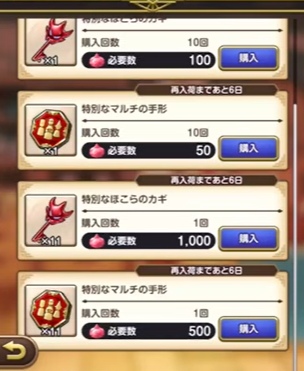 最速育成の核心はここ。1週間に21本もの祠の鍵をジェムで購入できる(1日3本分)。通常の無料入手だけではほこらへ行ける回数が非常に少ないため、ジェムで補うことで圧倒的なアドバンテージになる。