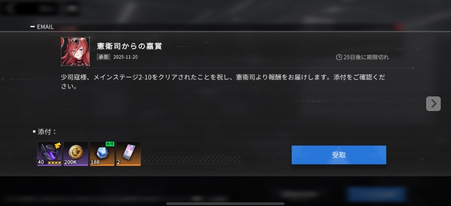 チュートリアル完了後、ホーム画面の「メール」や「ミッション」から事前登録報酬などを全て受け取ります。