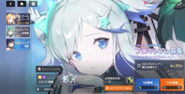 「プロキシアン募集」ガチャを引く。ガチャを引いた後に、Tier表を確認して、そのまま攻略を続けるかどうかを決める |
