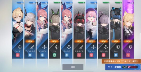 チュートリアルを進めていく。1-9まで進めたらガチャ機能(募集)が開放される |