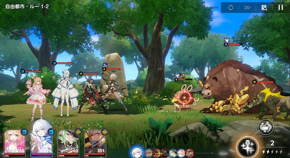 開発中のプレイ動画を見ると、ターン制ゲームバトルに変更したようで、上のように4名のキャラクターを編成してプレイすることになりそう。そうなってくると、キャラクターをゲットするのがリセマラ要素になるでしょう。
