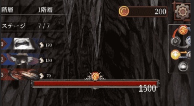 ゲームの画面を見ると左上にキャラクターが3名います。ですから、おそらくこちらのゲームはダンジョンを攻略するためにキャラクターを編成してパーティーを組み、たたかっていくことになるはず。